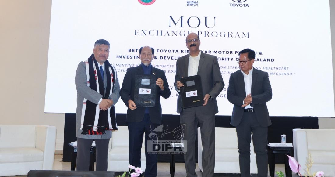 The MoU Exchange Program between Toyota Kirloskar Motor Pvt. Ltd. and Investment & Development Authority of Nagaland (IDAN) was held at the Bamboo Hall, Naga Heritage Village, Kisama on 2nd December 2025. The MoU is to implement key Corporate Social Responsibility (CSR) of the company, with the objective on strengthening Healthcare Infrastructure and improving educational facilities at Kohima and Dimapur.