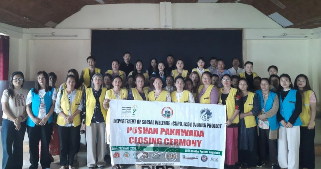 The closing ceremony of Poshan Pakhwada campaign was held at the VDB Hall, Wokha, on April 23, 2026. The programme marked the successful culmination of the fortnight-long campaign aimed at promoting nutrition awareness and community participation.