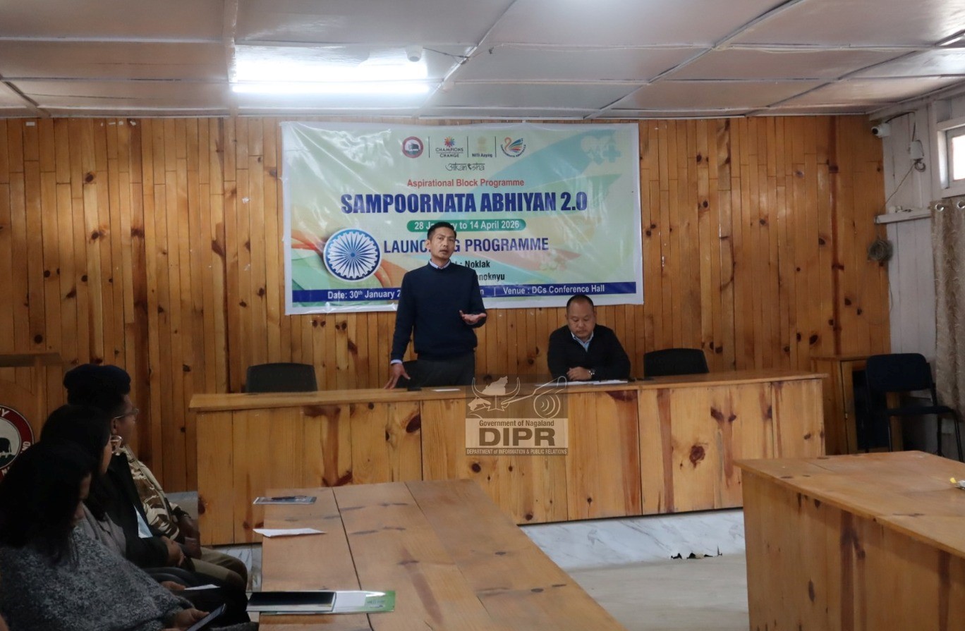 DC Noklak, P. Mono Khiamniungan addressing during the Aspirational Block Programme, Sampoornata Abhiyan 2.0 held at DC's Conference Hall, Noklak on 30th January 2026.