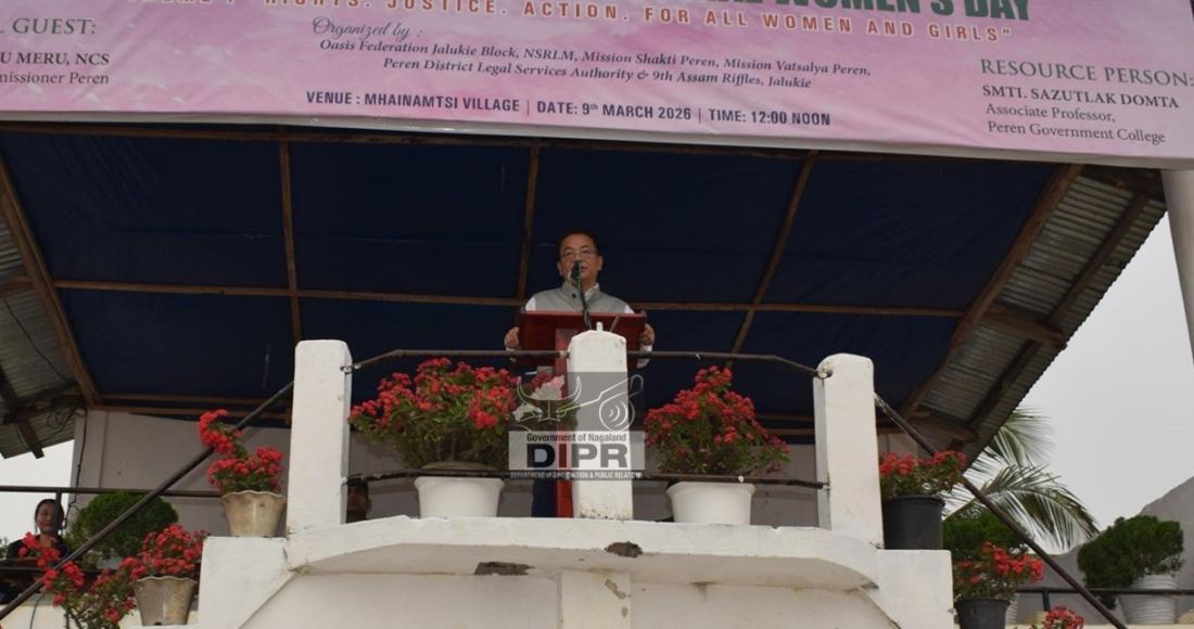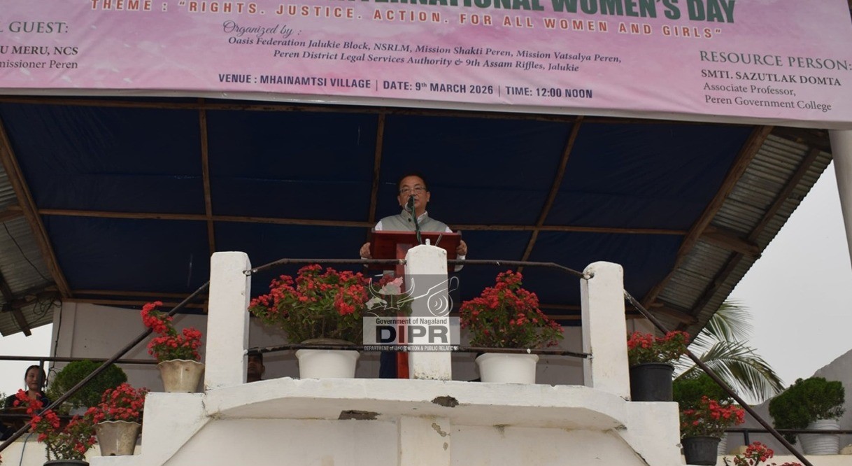 International Women’s Day was celebrated at Mhainamtsi Village, Peren on 9th March 2026 under the theme “Rights, Justice, Action: For All Women and Girls.” The programme was organized by Oasis Federation Jalukie Block in collaboration with NSRLM, Mission Shakti Peren, Mission Vatsalya Peren, Peren District Legal Services Authority and 9th Assam Rifles Jalukie.