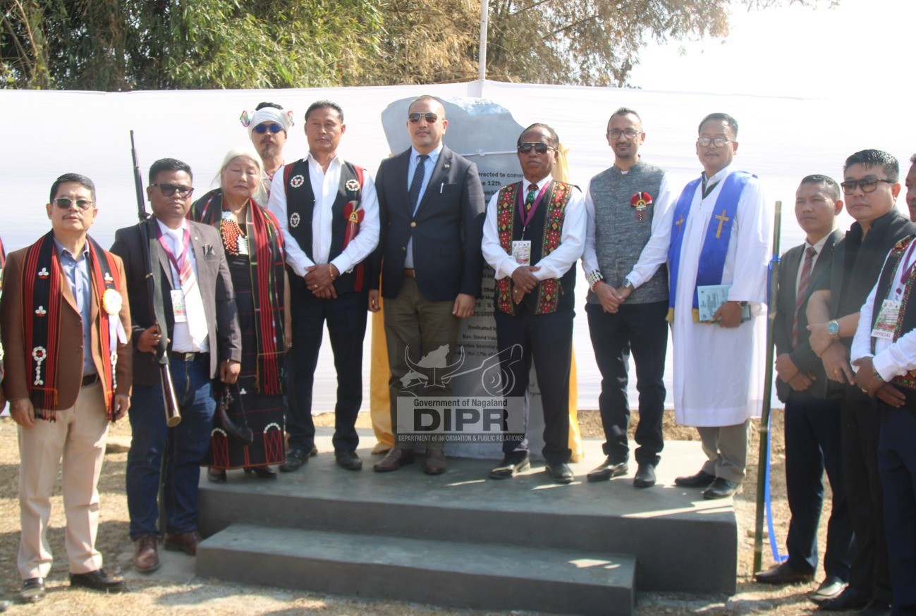 The  Day 2 programme of the Mimkut festival at Maova village culminated on 17th january 2026, marked by the unveiling of Mimkut monolith by the Special Guest, I Himato Zhimomi, IFS, Principal Secretary Geology and Mining, P&NG, Science and Technology in the presence of Chief Host, L Singsit IPS (Rtd), President Kuki Inpi Nagaland, ADC Medziphema, P James Swu , Government officials , village leaders and general public. The monolith was dedicated by Rev. David Vaiphei, Executive Secretary KCCNS.