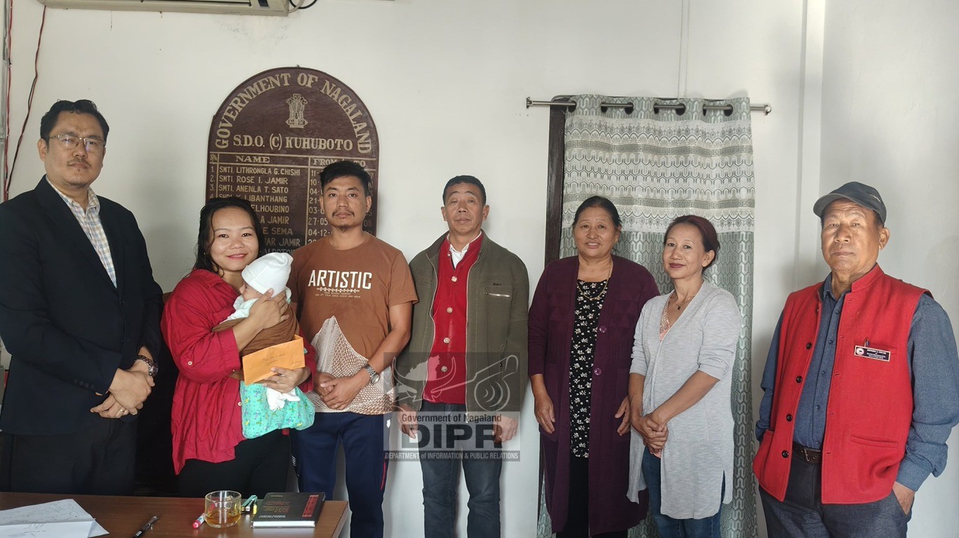 Under the initiative of the District Administration of Niuland to encourage institutional deliveries, Kelengunuo Solo, EAC Niuland giving away Rs.5000 to Vitoni of Ghotovi village for delivering a baby boy at CHC, Niuland on 9th January 2026.