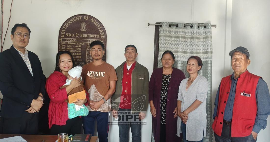 SDO (C) Kuhuboto, Nuhuta Tunyi with other officials after giving away Rs.5000 to Vitoli of S. Hotovi village for delivering a baby boy at PHC Kuhuboto, Niuland on 19th January 2026.