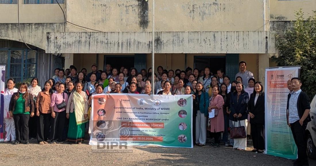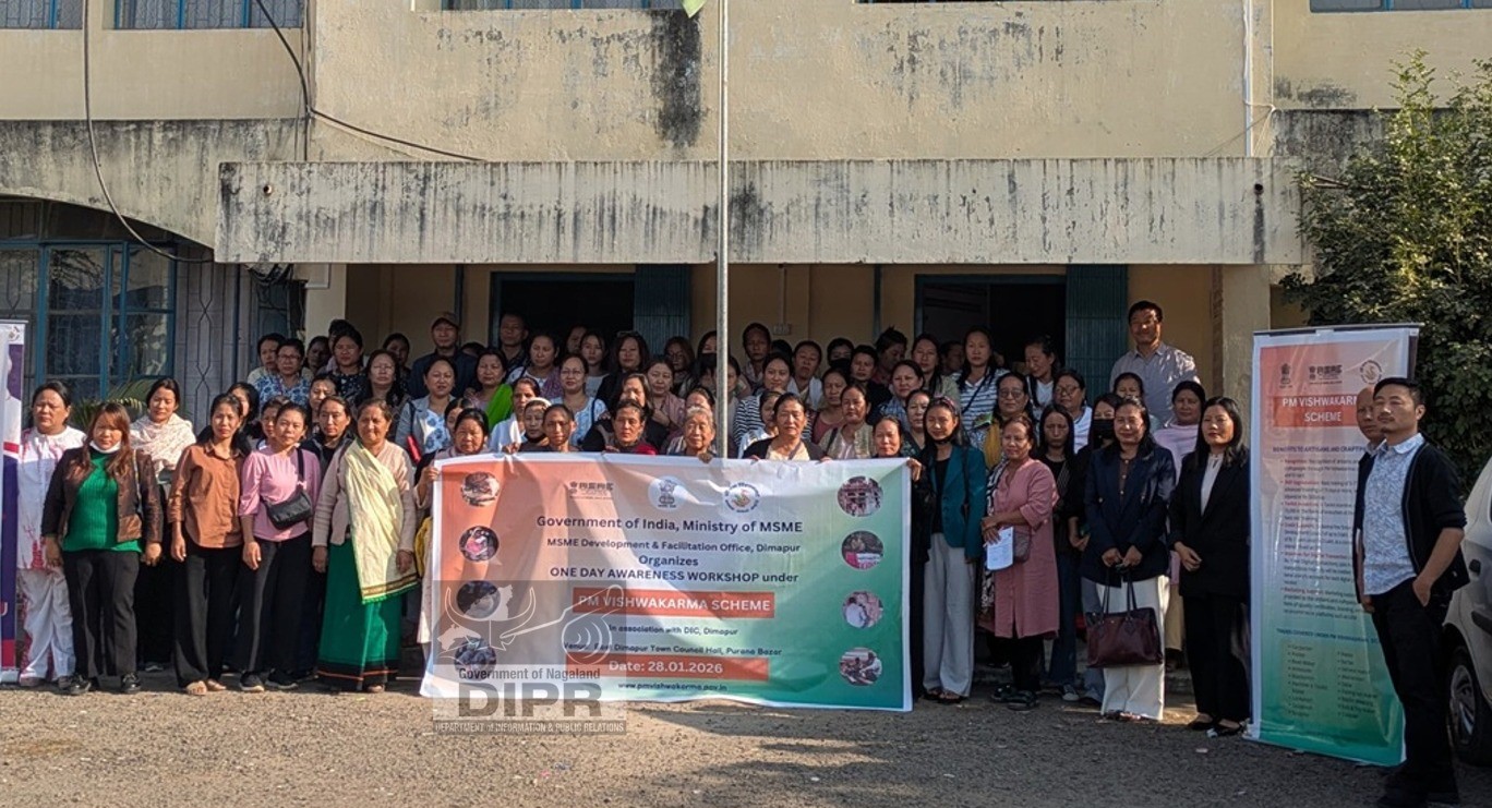The Ministry of MSME, Government of India, through the MSME Development and Facilitation Office (DFO), Dimapur, in association with the Department of Industries and Commerce and District Industries Centre (DIC), Dimapur, organised a one-day market awareness workshop under the PM Vishwakarma Scheme at the East Dimapur Town Council Hall, Purana Bazar, Dimapur on January 28, 2026.