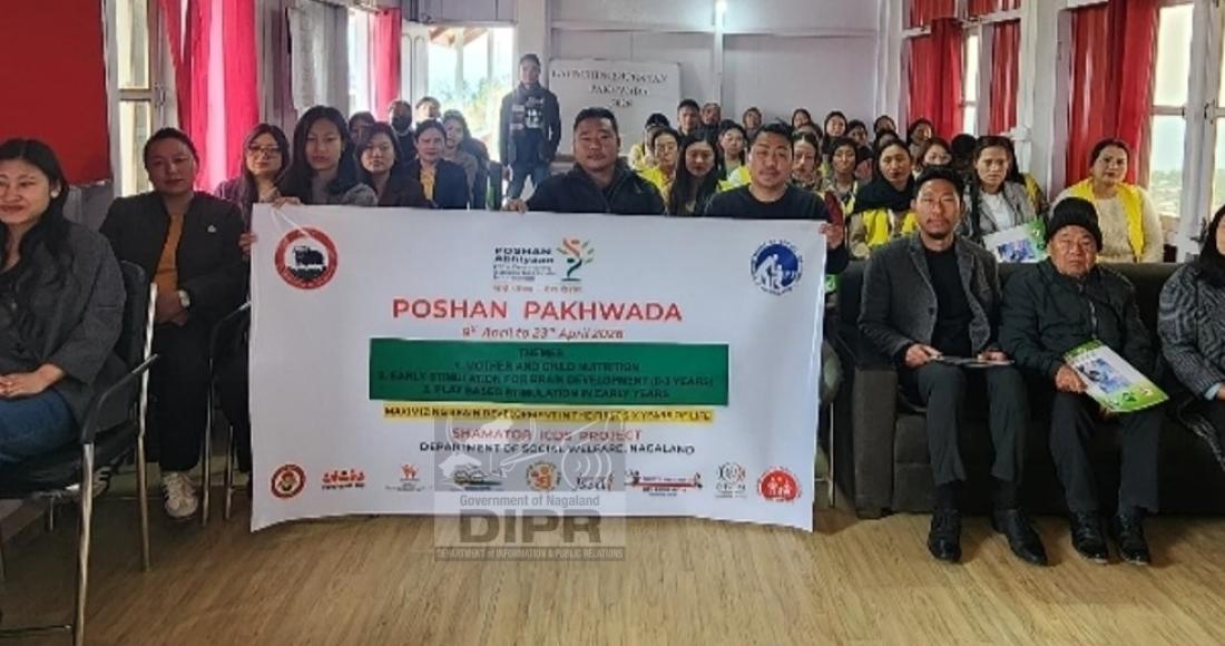 Social Welfare Department, Shamator district organised the launching programme of Poshan Pakhwada 2026 at Community Managed Training Centre NSRLM, Shamator on 9th April, 2026 with SDO (C) Shamator, Bodi Kapfo, NCS, and District Programme Officer Shamator, Renchano Odyuo as the guest speakers.