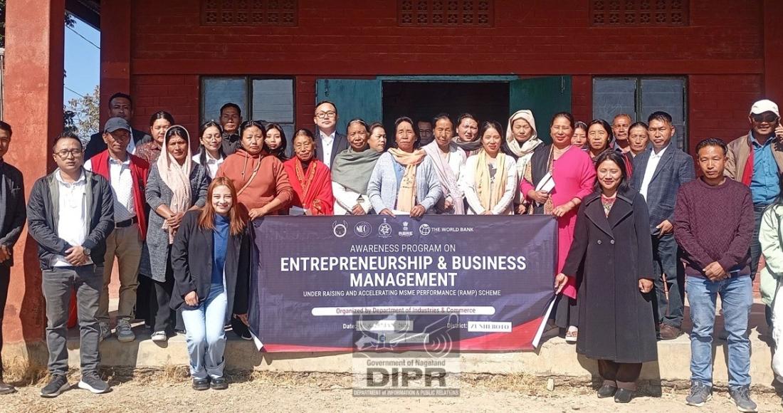 In furtherance of the Government’s initiatives to strengthen the MSME ecosystem, a Specialised Capacity Building Programme on “Equip MSMEs to Manage Business Efficiently,” “Entrepreneurship & Business Management,” and “Digital Marketing Trends and Social Media Marketing for MSMEs” was organised by the Department of Industries & Commerce under the Raising and Accelerating MSME Performance (RAMP) Scheme, with support from the World Bank, on 28th January 2026 at Jubilee Hall, Atoizu Town and KPA Indoor Stadium, Asukhuto Town, Zunheboto as part of two day programme.