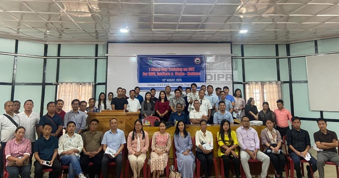 One-day training on the Goods and Services Tax (GST) for Drawing and Disbursing Officers (DDOs), Dealers, and Stakeholders was held on 19th August 2025, at CKS Hall in Tuensang. The event was organized by the Commissioner of State Taxes, Government of Nagaland.