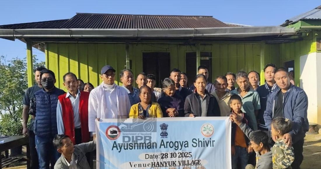Officials and participants during the Ayushman Arogya Shivar Ayush Health camp organized by the Integrated AYUSH Hospital, Noklak held at Hanyuk village, Noklak on 28th October 2025. (APRO Noklak)