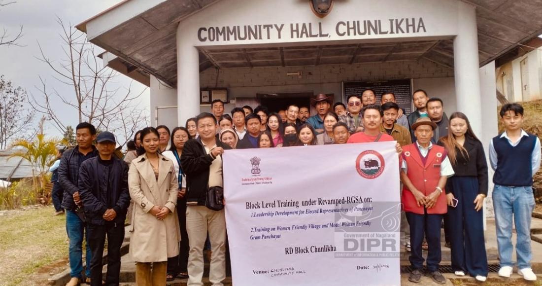 A Block Level Training under Revamped-RGSA on "Leadership Development for Elected Representatives of the Panchayat" and a training program for "Women Friendly Village and Model Women Friendly Gram Panchayat" for Chunlikha block was held on 30th March 2026 at the Community Hall of Chunlikha village, Tseminyu. The program was chaired by Thejasenuo Roseline Sekhose, DEO, RGSA, RD Block Chunlikha, while the welcome address was delivered by Bendanwatila, BDO Chunlikha.