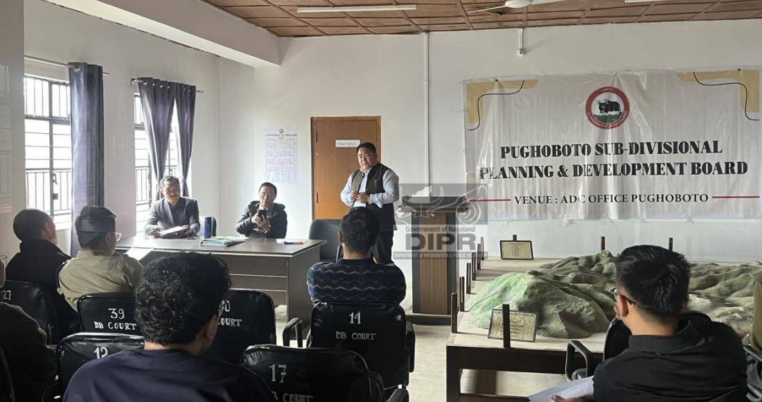 The Pughoboto Sub-Divisional Planning and Development Board (SDPDB) meeting for April was held at ADC Office, Pughoboto, on 7th April 2026 under the chairmanship of MLA and SDPDB Chairman Dr. Sukhato A. Sema, with Vice Chairman and ADC Meyazungba Jamir, NCS, co-chairing the session.