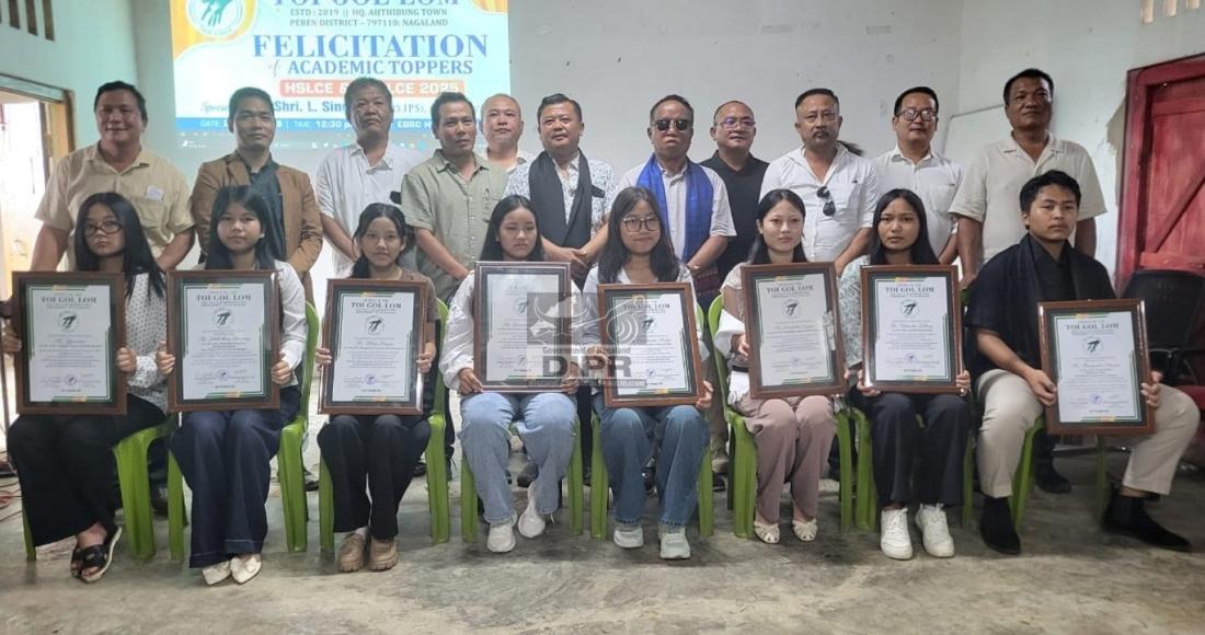 TOI GOL LOM, Ahthibung Town felicitated the Kuki community’s High School Leaving Certificate Examination (HSLC) and Higher Secondary School Leaving Certificate Examination (HSSLCE) 2025 toppers at a special function held at EBRC hall, Ahthibung Town, Peren on 2nd October 2025. The event was organized to honour the academic excellence and encourage young achievers to pursue education with dedication and resilience.