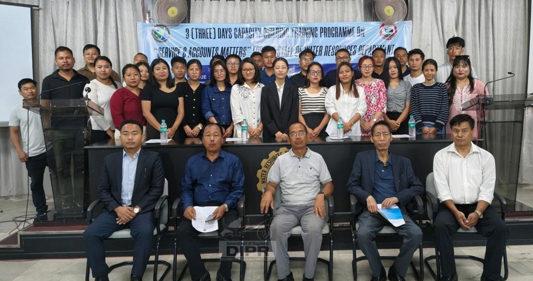 Chief Engineer, WRD, Er. Thepfusalie Guozi, Deputy Secretary, Economics & Statistics, Andreas Lotha and other officials along with the participants during the 3-day Capacity Building Training Program on Service and Accounts Matters for the staff of Water Resources Department at Conference Hall, WRD, Kohima on 23rd September 2025.(DIPR)