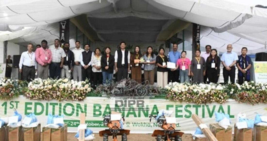 The closing ceremony of the First Edition of the Banana Festival 2025 was held on 23rd Oct.2025 at the Public Ground, Wokha, with Advisor for Agriculture, Mhathung Yanthan, attending as the special guest. While the formal closing was observed, the festival will continue into its final day with ongoing exhibitions, training sessions, and interactive activities.