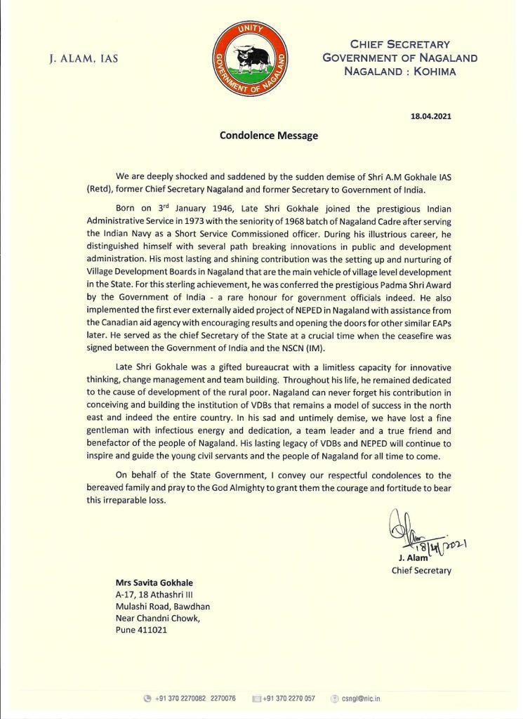 * * CS condoles | DIPR Nagaland-Department of Information & Public Relations, Nagaland