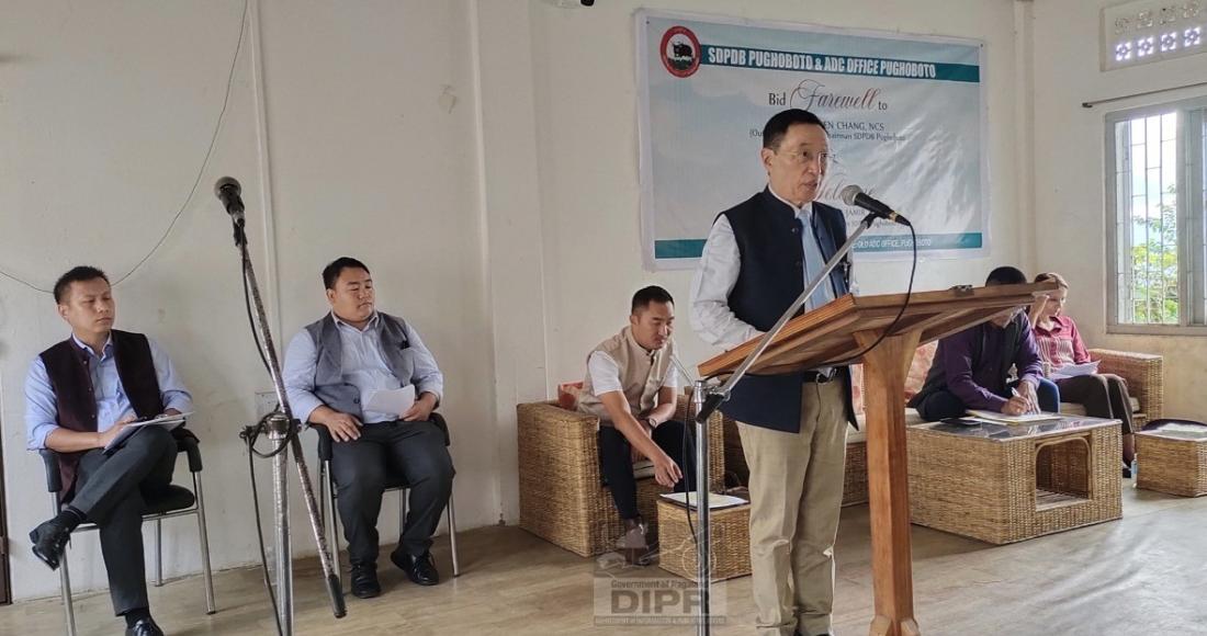 In his farewell address, MLA & Chairman SDPDB Pughoboto, Dr. Sukhato A Sema, lauded the outgoing ADC, Tiameren Chang as one of the best administrator posted in Pughoboto Sub-division. Commenting with gratitude for the noble service rendered by the outgoing ADC for the upliftment of the people of Pughoboto, Sema asserted that posting and transfer is a usual journey of a government employees, he wish him to come back, with higher rank filled with vast experience and wisdom to the serve the people of Pughoboto.